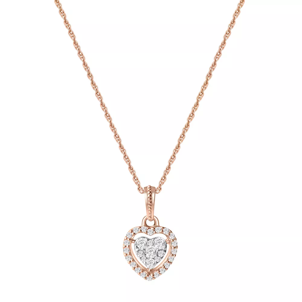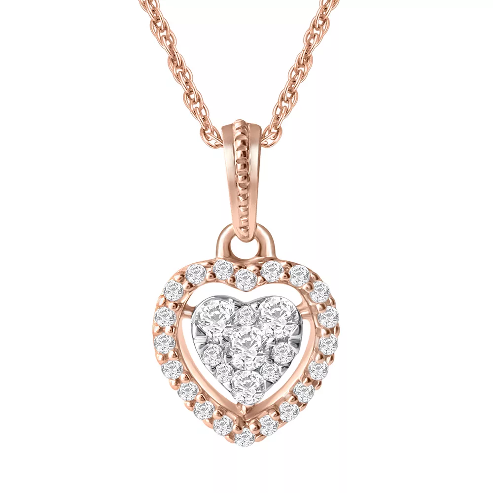 Featuring a heart design and round-cut diamonds, this 10k rose gold pendant necklace is lovely and luxurious.
