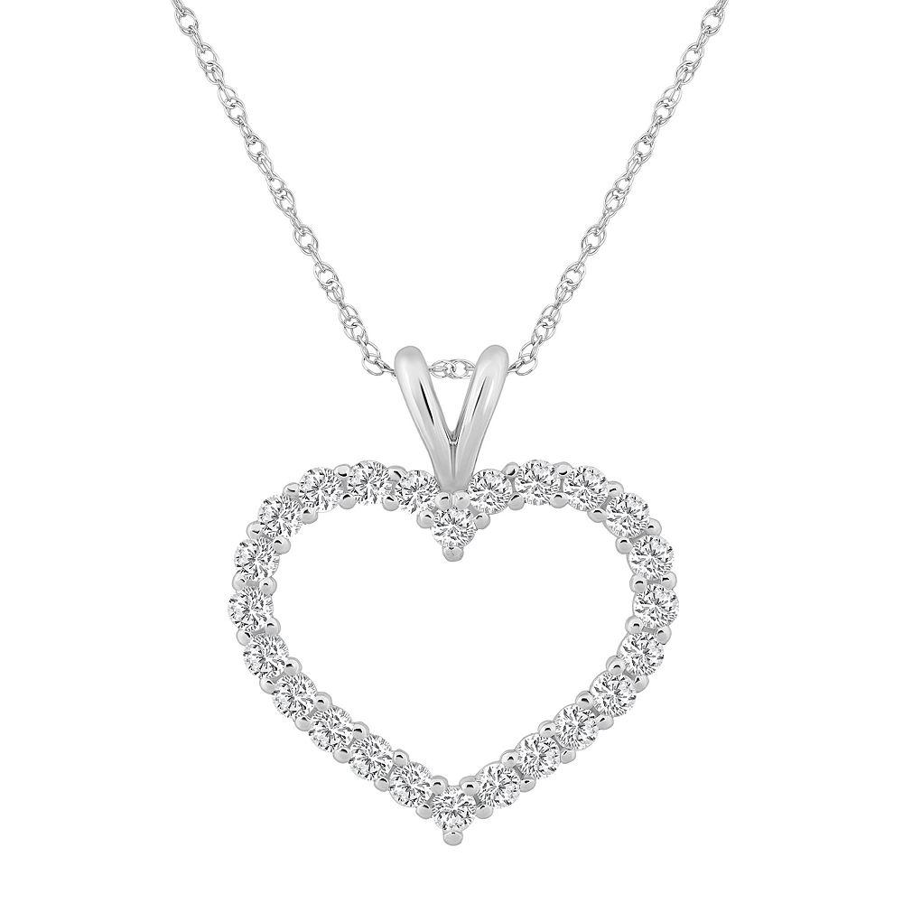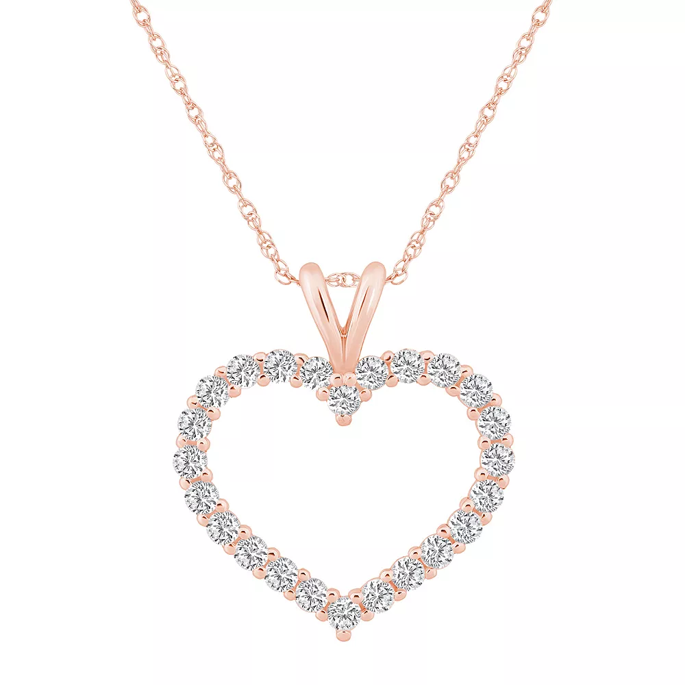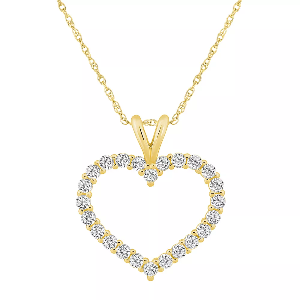 Show her how much she means to you with this diamond-studded Alyson Layne 14k gold open heart pendant necklace.