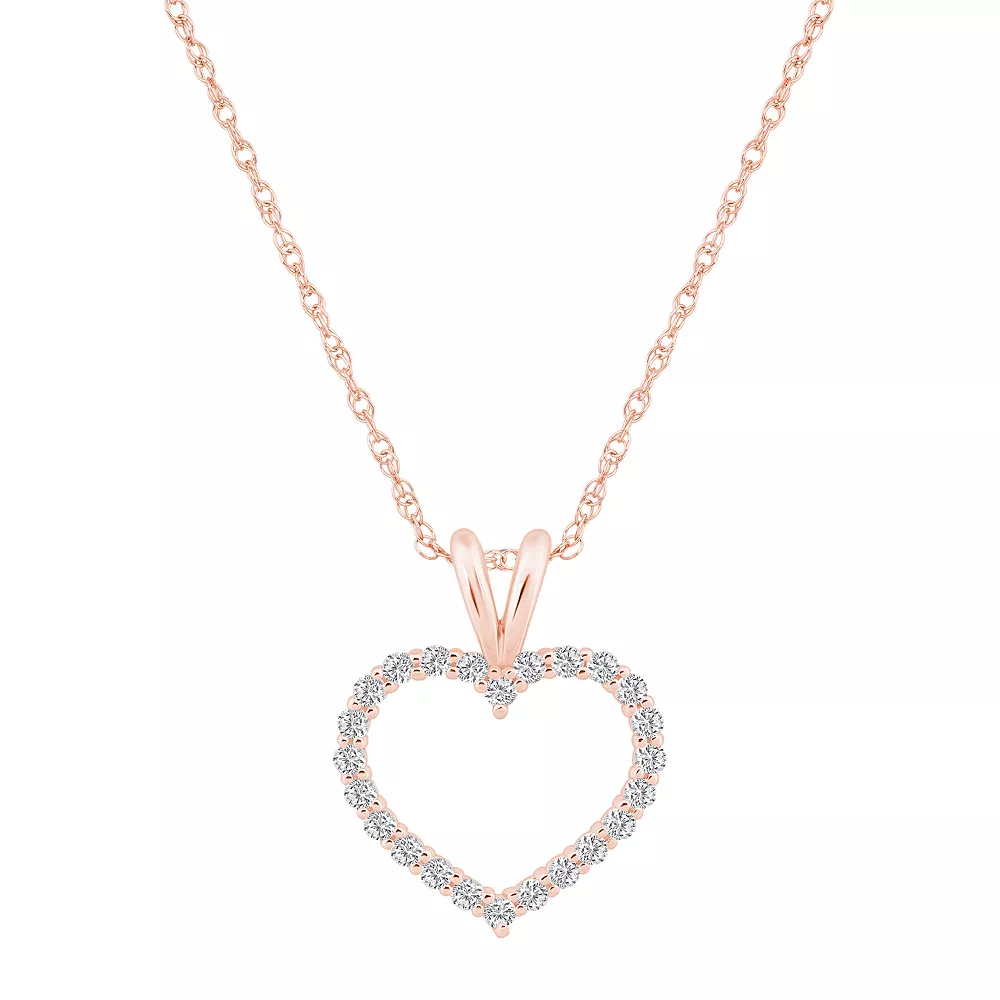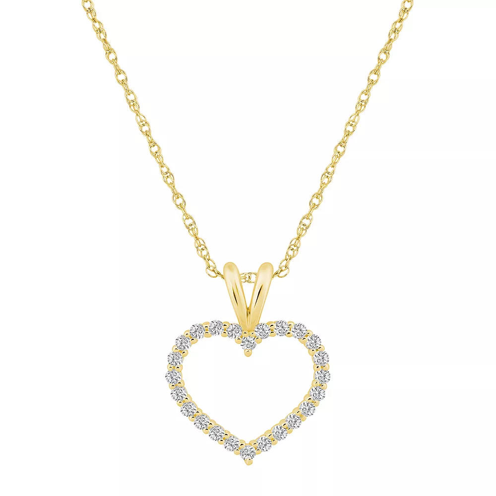 Show her how much she means to you with this diamond-studded Alyson Layne 14k gold open heart pendant necklace.