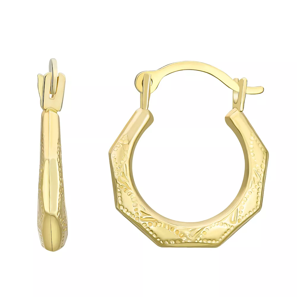 Put the finishing touch on her look with these Charming Girl 14k gold hexagon hoop earrings.