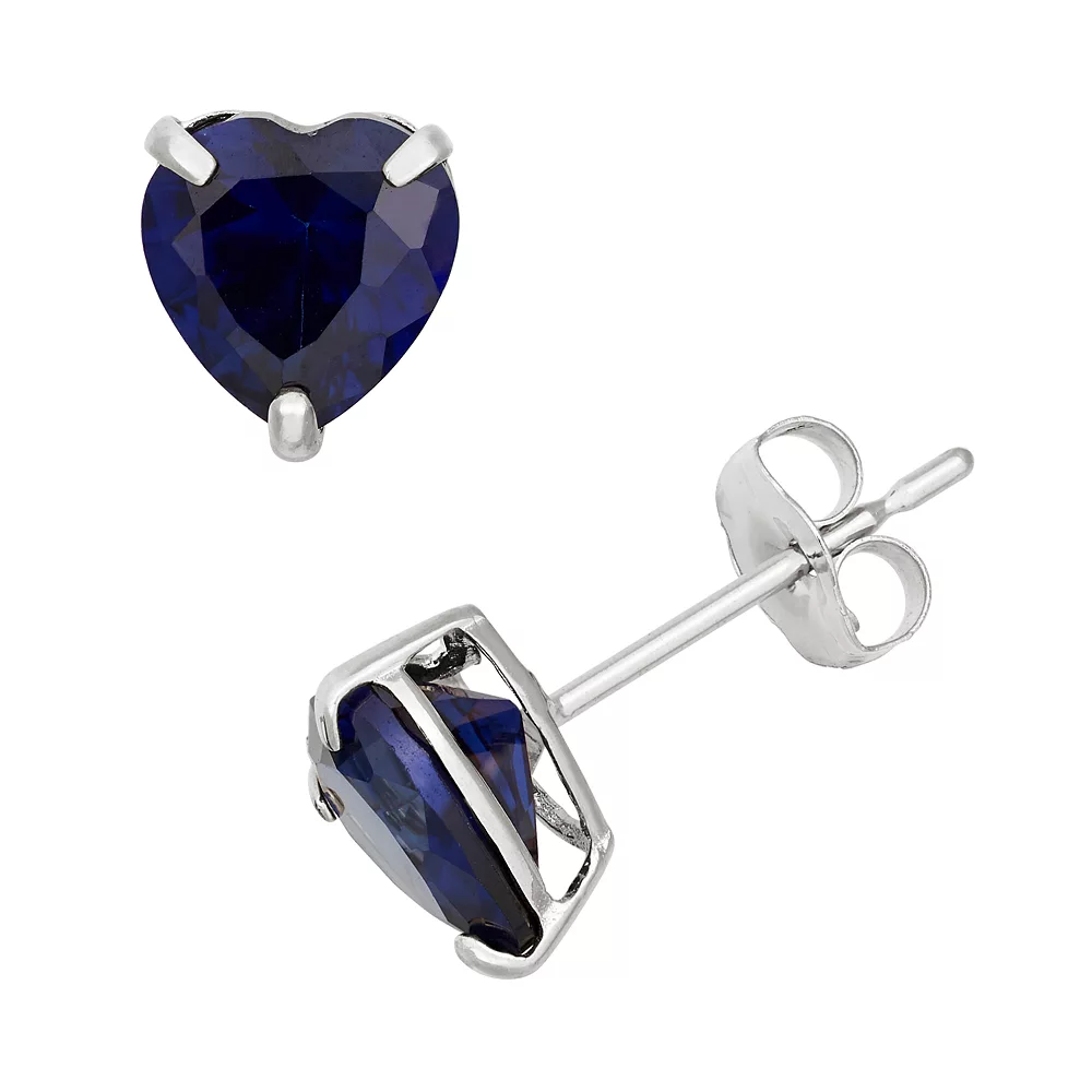 Add feminine charm to your ensemble with these heart-cut, lab-created sapphire stud earrings.
