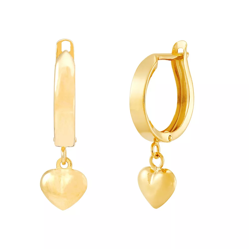 You will love the classy design of these 10k gold heart dangle hoop earrings by Everlasting Gold.