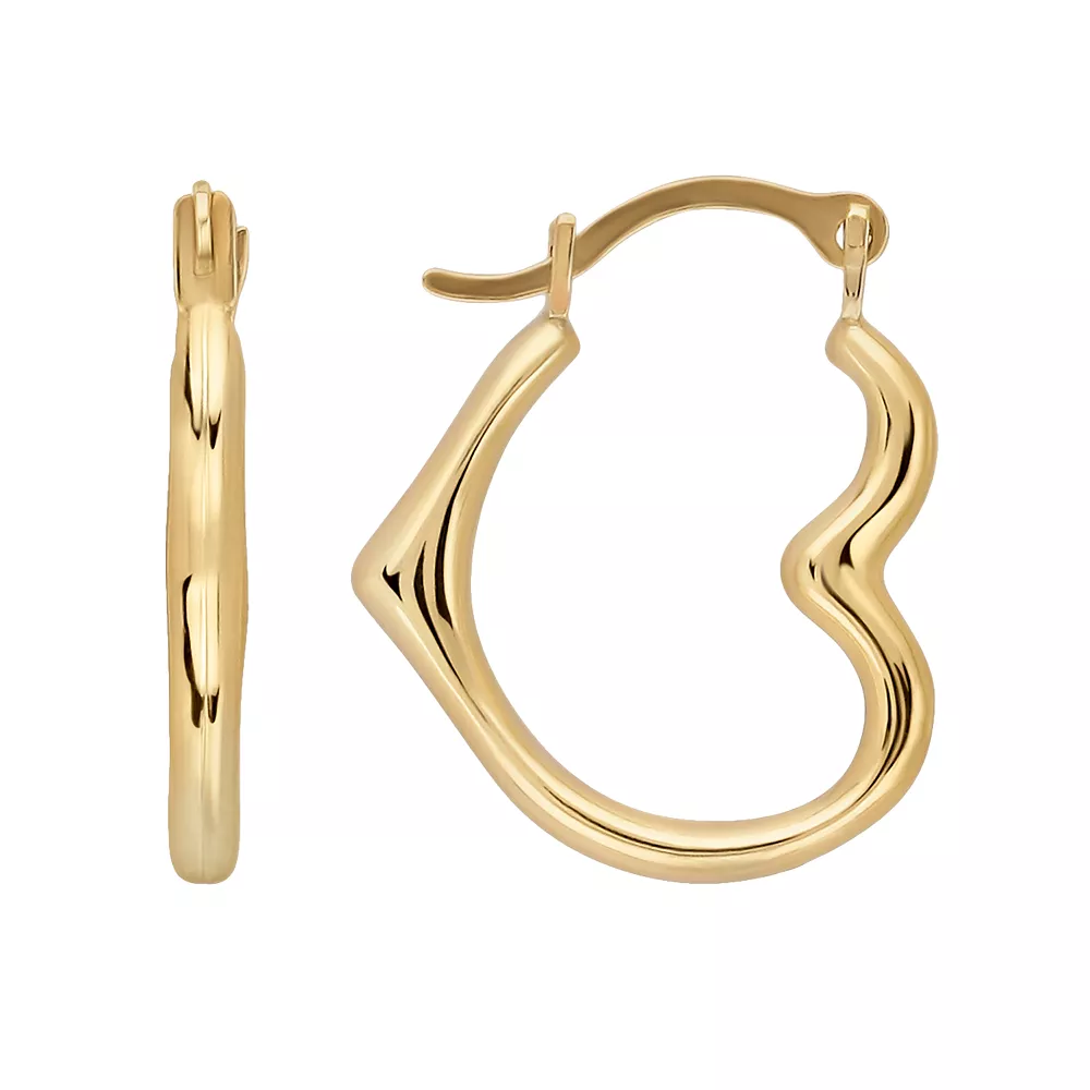 Add the perfect touch of romance to your look with these 10k gold heart-shaped hoops.