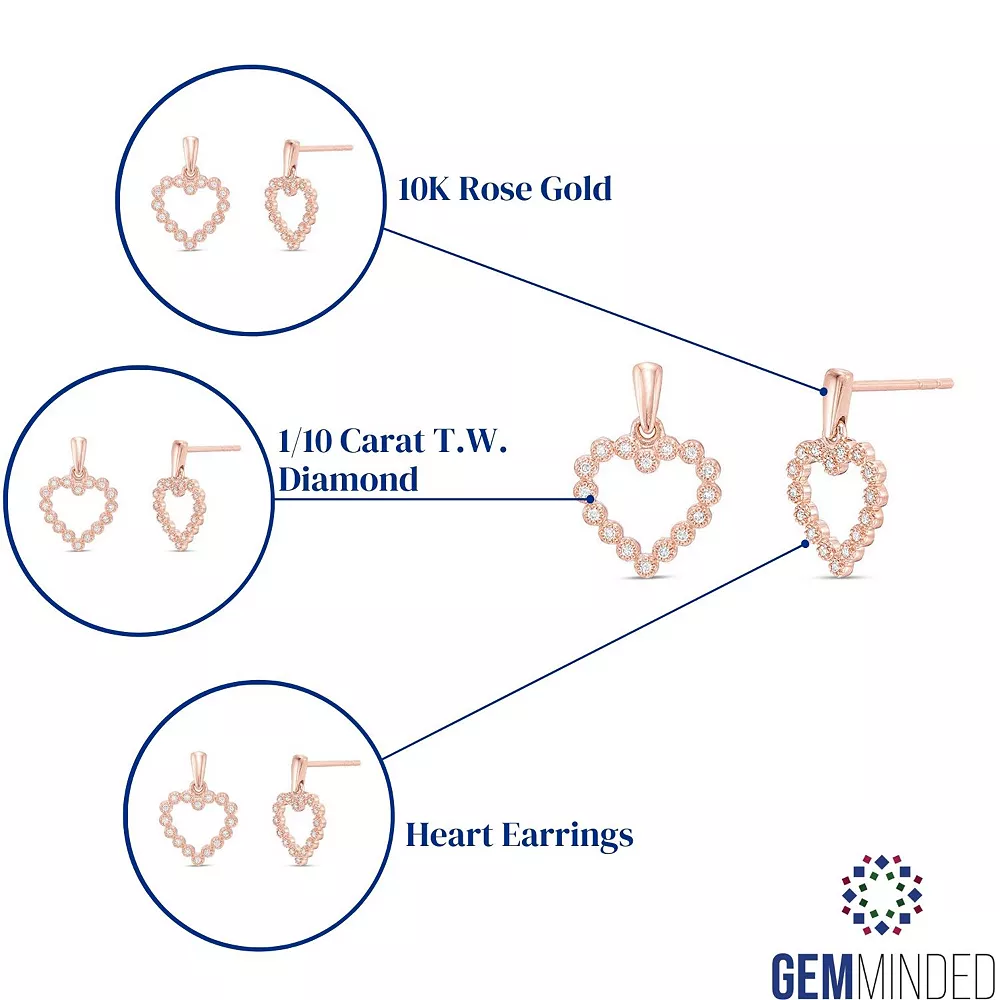 Beautifully adorned with round-cut diamonds, these 10k rose gold heart earrings are a sweet addition to your jewelry collection.