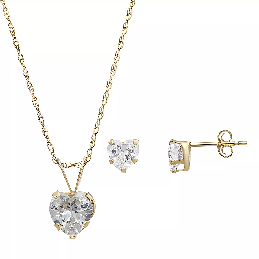 Add a lovely touch of sparkle to your ensemble with this 10k gold Taylor Grace cubic zirconia-studded heart necklace and stud earrings set.